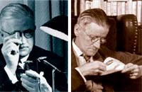 in great part, albeit a bizarre part, to angling literature. I got started on the Wake accidentally four years ago while engaged on my own work in progress, Flagrante Delicto Fly-Fishing. I was doing research on Preston Jennings, the first American author to codify the aquatic insects that trout eat so that anglers could imitate them with artificial flies. Jennings published A Book of Trout Flies in 1935, four years before the Wake, and in the course of my research I chanced to run across the photograph reproduced here. It seemed similar to another photograph I'd seen before. I searched my mind, and then I remembered that it was the one of Joyce. The resemblance between the two is extraordinary, down to the optical objects in the right hand. Recalling that Vladimir Nabokov, whom I once accompanied on a butterfly chase in Arizona, maintained that Salvador Dali was Norman Rockwell's twin brother, who had been kidnapped by Gypsies, I decided to write a facetious article stating that Joyce and Jennings had been separated at birth. I thought that just two or three fishing references in the Wake would suffice for a short comic piece. Instead, I discovered so many that I could fill a book. A brief sample follows. For the Wake, Joyce coined words, took words from 62 languages and dialects and inserted words within words, with every word ''bound over to carry three score and ten toptypsical readings.'' He advised the reader to ''wipe your glosses with what you know.'' Influential Joyceans claim that Shakespeare is the major theme, ''the rock mass in which metal, fossils, gems are enclosed or embedded,'' to quote the scholar Adaline Glasheen. They base this on the number of allusions to Shakespeare and his works, 300 all told in 628 pages, an average of 0.48 for every page. Indeed, in The Western Canon, Harold Bloom proclaims that Shakespeare ''has always guided my reading of the Wake.'' Really? By my count, the number of allusions to fish and their watery world comes to at least 2,200, an average of 3.5 per page. From the very first word, ''riverrun,'' the Wake is awash in fishy phrases, such as ''Songster, angler, choreographer!,'' ''compleat anglers,'' ''And if you're not your bloater's kipper . . . you're rod, hook and sinker,'' ''Holy eel and Sainted Salmon, chucking chub and ducking dace,'' ''one man's fish and a dozen men's poissons,'' ''catching trophies of the king's royal college of sturgeone by the armful for to bake pike,'' ''Flies do your float'' and ''My herrings!'' The wordplay on the initials of the major male character, H. C. Earwicker, sometimes has a fishy connotation, as in ''Human Conger Eel,'' ''erst crafty hakemouth'' and ''Ear canny hare'' (the hare's ear is a trout fly). His wife, Anna Livia Plurabelle, personifies the River Liffey, which flows from the Wicklow Mountains to the Irish Sea and whose delta smells of fish, while son Shem has a ''trio of barbels'' on his chin, ''a salmonkelt's thinskin'' and ''eelsblood in his cold toes.'' Here and there, Joyce checks to see if the reader has caught on to his angling game. Page 16: ''You spigotty anglease?'' In other words, ''You speak angling?'' Page 485: ''Are we speachin d'anglas landadge?'' Page 532: ''Angleslachsen is spoken by Sall,'' which means, to me, ''Angling language is spoken by all.'' Added touch: ''lachsen'' also stands for salmon, because Lachs is the German for that fish. There are 100 references to salmonid fish and aspects of their life history, e.g., Atlantic, coho and chinook salmon; rainbow, brown, lake and sea trout; spawn, milt, redd, alevin, fry, parr, smolt, troterella (the Italian for little trout), grilse, gillaroo (an Irish trout with stomach muscles that can crush the shells of mollusks) and sockdolager (angling slang for a huge trout). The word ''fish'' occurs 85 times alone or in combination, as in ''fishy fable,'' which could be another title for the Wake. References to other fish, often multiple in number, include ide, orfe and oarfish (both in ''orfishfellows''), argentine, scup, sennet, sergeant major, shiner, rudd, cod, bullhead, blowfish, mackerel, spearing, sprat, stickleback, stargazer, halibut, perch, chub, grenadier, squawfish, tang, tarpon, fluke, flounder, lampern and slippery dick. ''Speckled trousers'' stands for